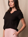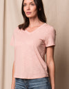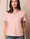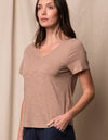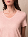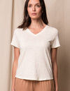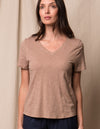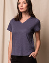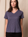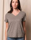 Bamboo/Cotton V-Neck Slub Tee - Timeless, soft, and effortlessly versatile. This classic V-neck tee is crafted from a luxurious bamboo and cotton blend that feels smooth, breathable, and naturally moisture-wicking. The easy fit and just-right length offer flattering coverage and endless styling options - perfect on its own or layered for any season. Comfort you can feel, style that never fades.