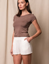 Bamboo Pockt Shorts - Soft, breathable, and made for every day. Crafted from smooth bamboo fabric, these shorts offer all-day comfort with an easy, relaxed fit and convenient side pockets. Perfect for lounging at home or casual day wear, they’re the effortless go-to you’ll reach for again and again.