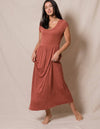 Bamboo Maxi Dress is your one-stop dress for any occasion. Staying home, running errands, shopping, work, or play, this one keeps you cool and collected day and night. As comfortable as it can be, with two side pockets and a softly gathered waist for extra ease.