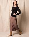 Redesigned for you, our best-selling Bamboo skirt now comes in an ankle-length cut! Featuring the same comfy fold-over waistband, side pockets, and flowing drape, it’s eco-friendly, sustainable, and luxuriously soft on sensitive skin. Pair it with a crop top or tank for an effortlessly chic look.