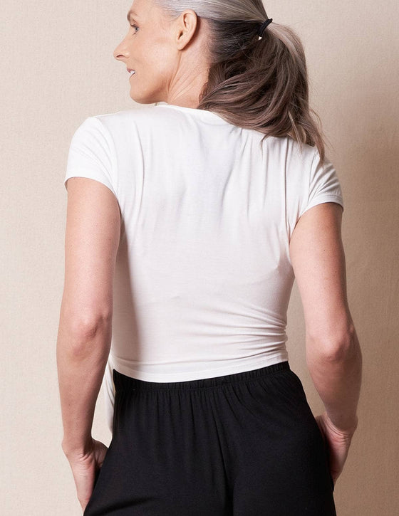 Bamboo Cap Sleeve Wrap Top - Soft White