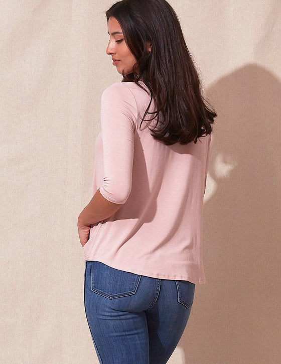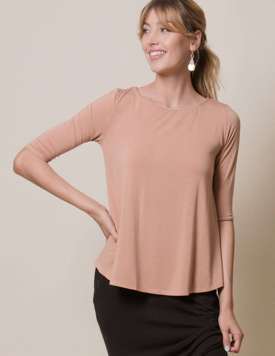 Nothing beats our Bamboo 3/4 Sleeve Tee. Soft bamboo knit with just a bit of spandex shapes this all-day favorite. Bamboo is our sustainable choice - antibacterial, breathable, and soft on sensitive skin.