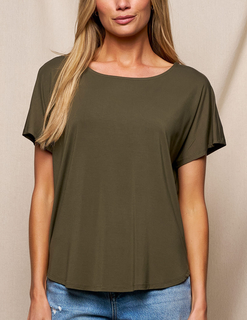 An all-season favorite, our Bamboo Dolman Tee goes everywhere and works with so many outfits. Sustainably crafted from OCS and OEKO-Tex-certified, non-toxic Tanboocel bamboo. Features a relaxed fit and our exclusive bamboo blend that is super soft, antibacterial, breathable, and especially comfy on sensitive skin.