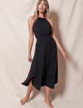 Meet the perfect Halter Dress - designed for feeling stylish and cozy! Alluring Bamboo Halter Dress has a smocked elastic waistband that falls into a full midi-length tulip-shaped skirt, creating the perfect hourglass silhouette.