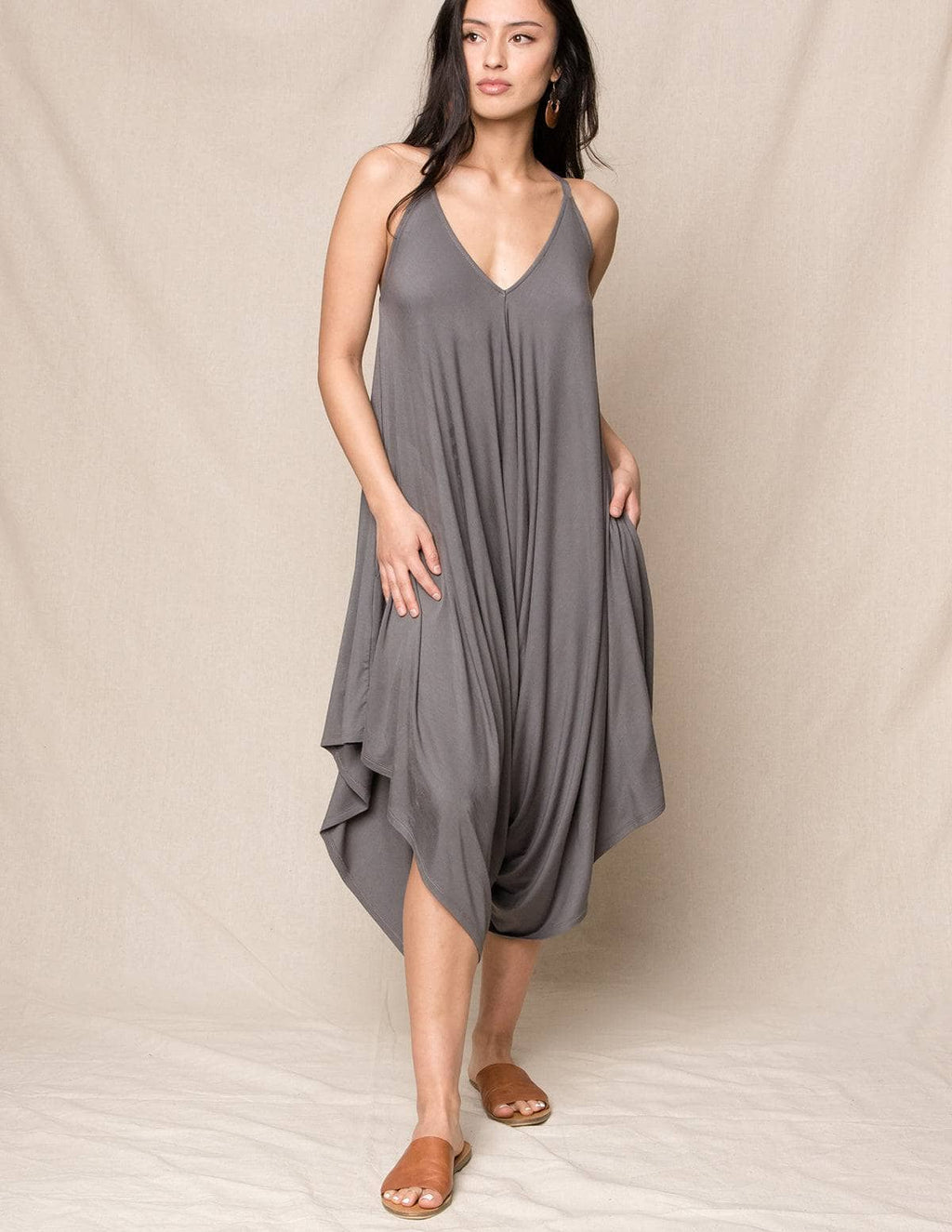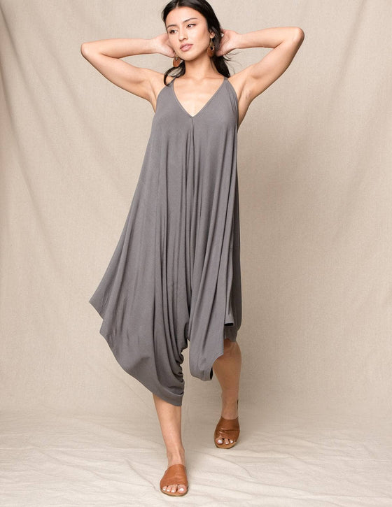 Soft bamboo knit in flowing harem-style pants with adjustable straps for the perfect fit. Bamboo is the sustainable choice - antibacterial, breathable, and soft on sensitive skin. With its flattering silhouette and versatile design, it effortlessly transitions from casual outings to elegant occasions, making it a must-have addition to your wardrobe.
