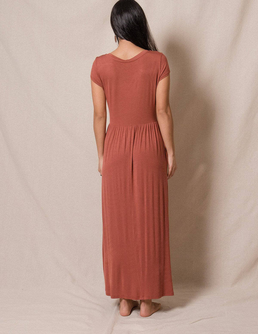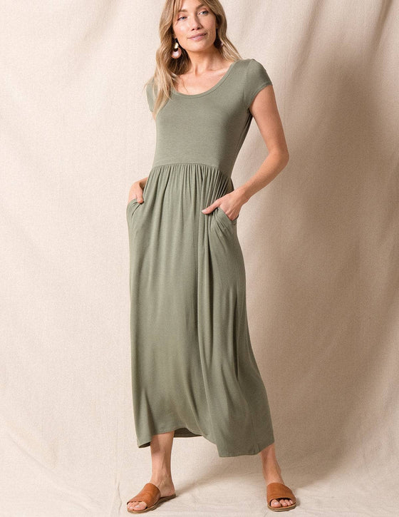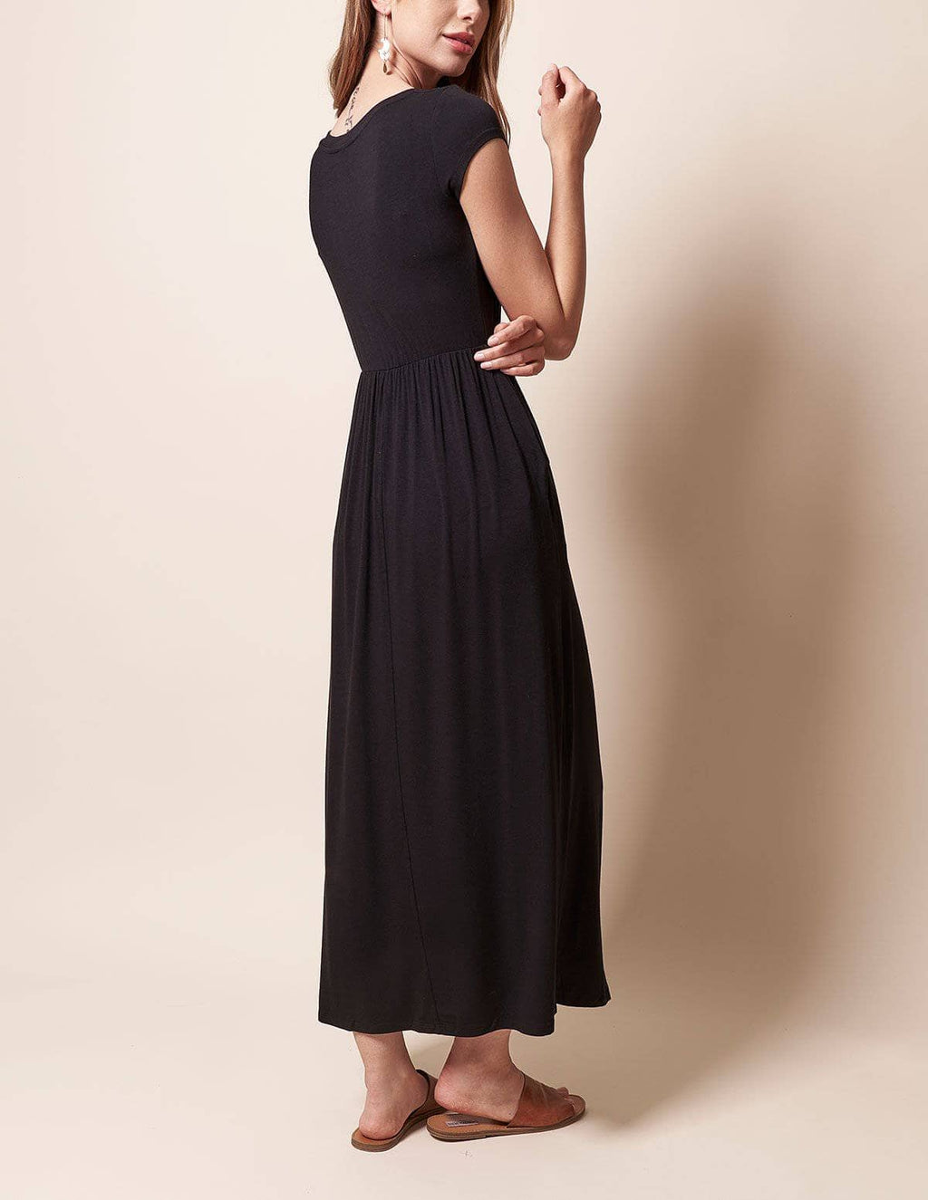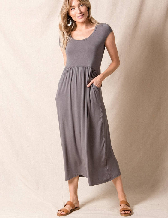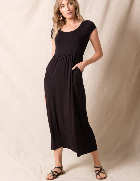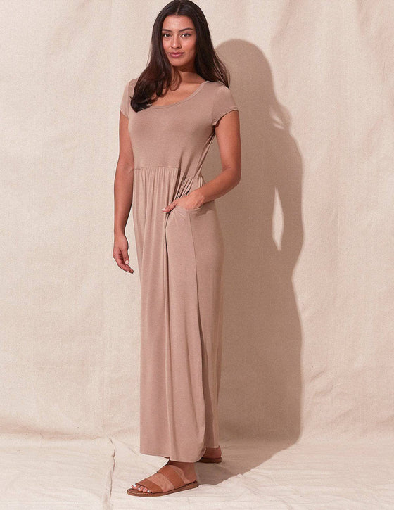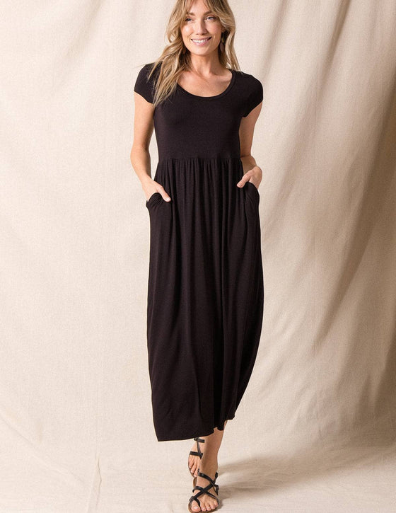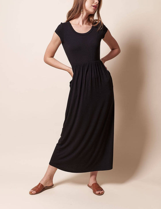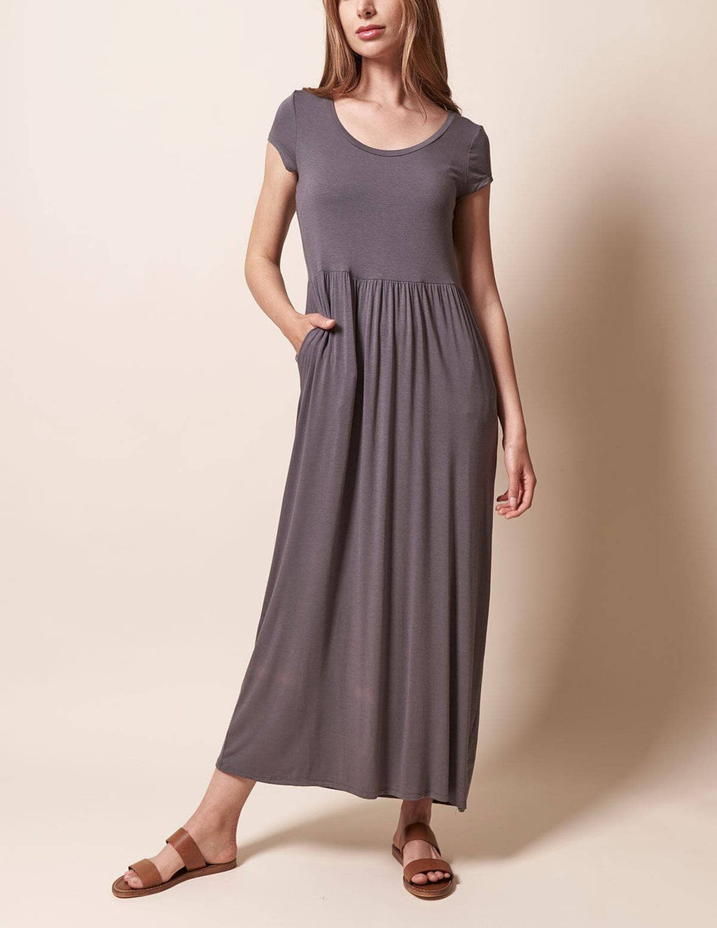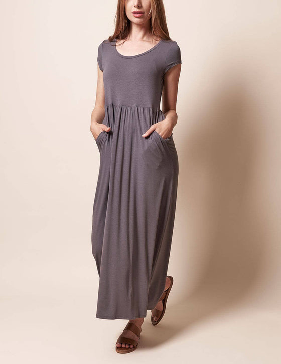 Bamboo Maxi Dress is your one-stop dress for any occasion. Staying home, running errands, shopping, work, or play, this one keeps you cool and collected day and night. As comfortable as it can be, with two side pockets and a softly gathered waist for extra ease.