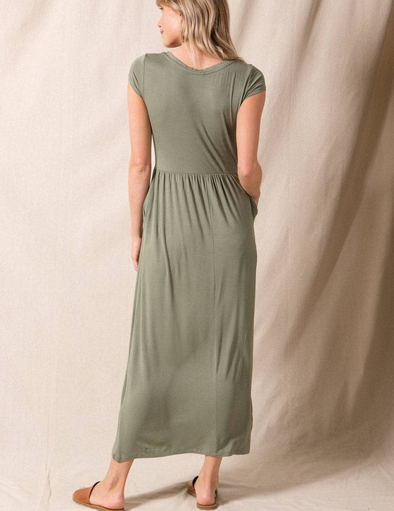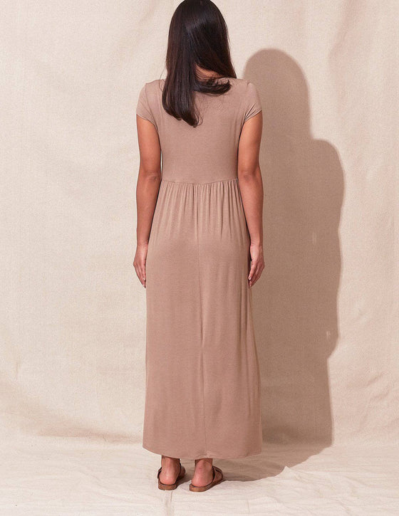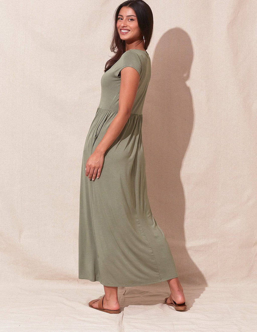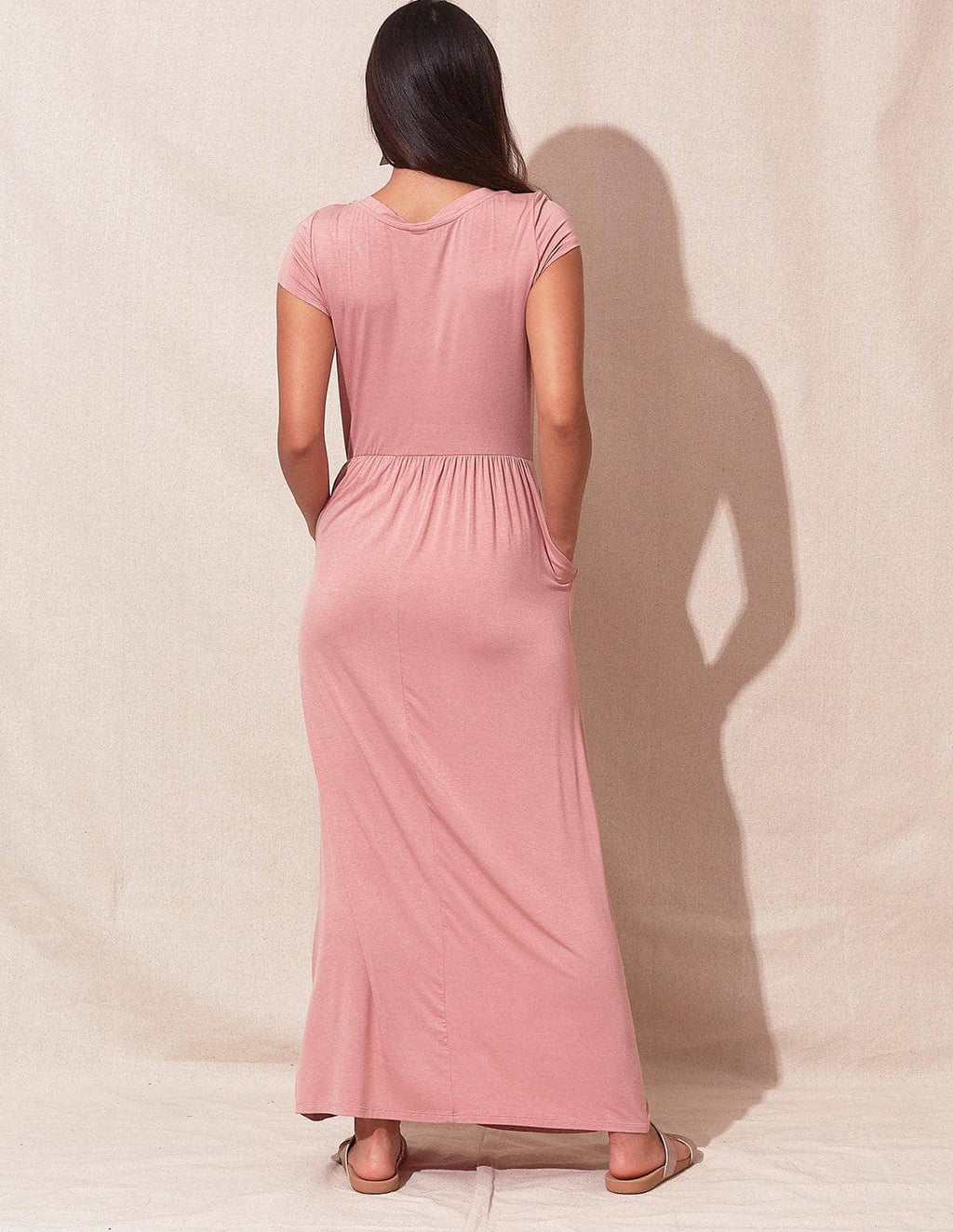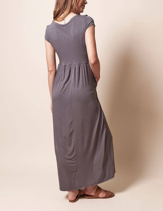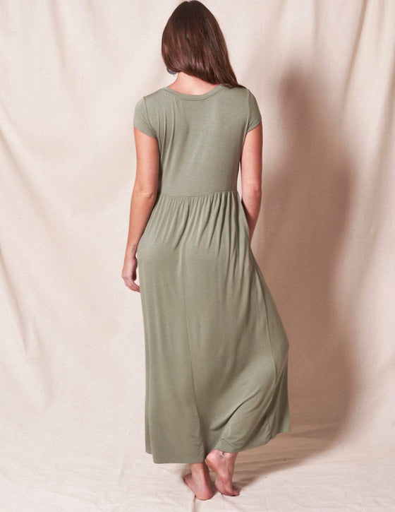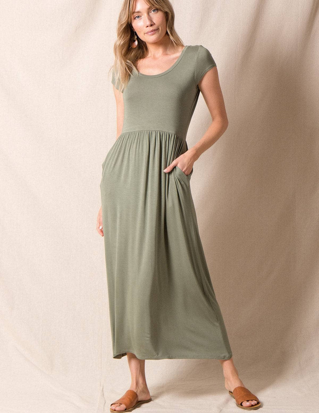 Bamboo Maxi Dress is your one-stop dress for any occasion. Staying home, running errands, shopping, work, or play, this one keeps you cool and collected day and night. As comfortable as it can be, with two side pockets and a softly gathered waist for extra ease.