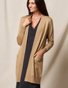 Bamboo/ Merino Wool Long Cardigan: Ultimate comfort meets sustainable style. Sustainably crafted from OCS and OEKO-Tex-certified, non-toxic Tanboocel bamboo blended with lush merino wool. This long, open-front cardigan combines the softness of bamboo with the warmth of wool. A perfect for layer for all seasons.