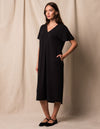 Bamboo Nova Dress combines a minimalist ethos with a luxury vibe. Made from a premium 240 gsm weight bamboo. A breeze to accessorize with a statement necklace or bold earrings. Relaxed, easy fit flows over curves, while a surprise back v-neck adds unexpected appeal. And side pockets too! Sustainably crafted from OCS and OEKO-Tex-certified, non-toxic Tanboocel bamboo fabric.