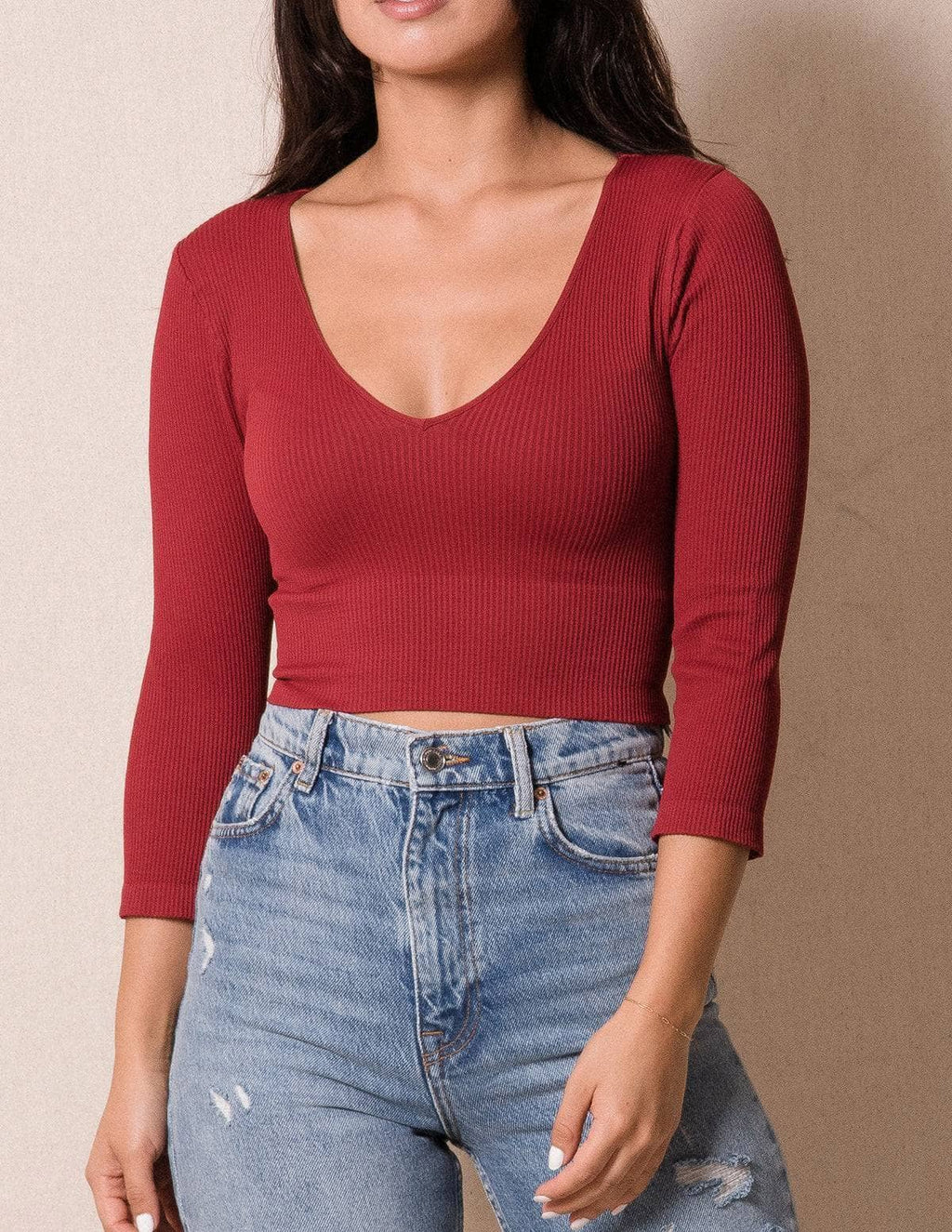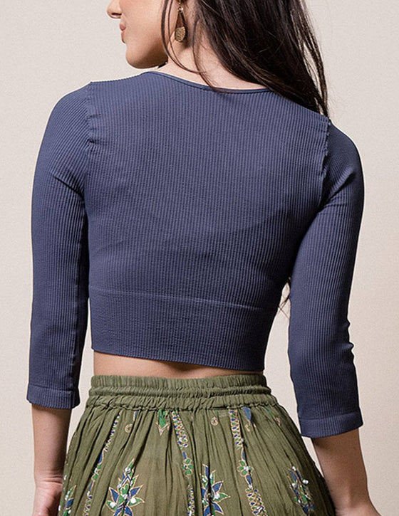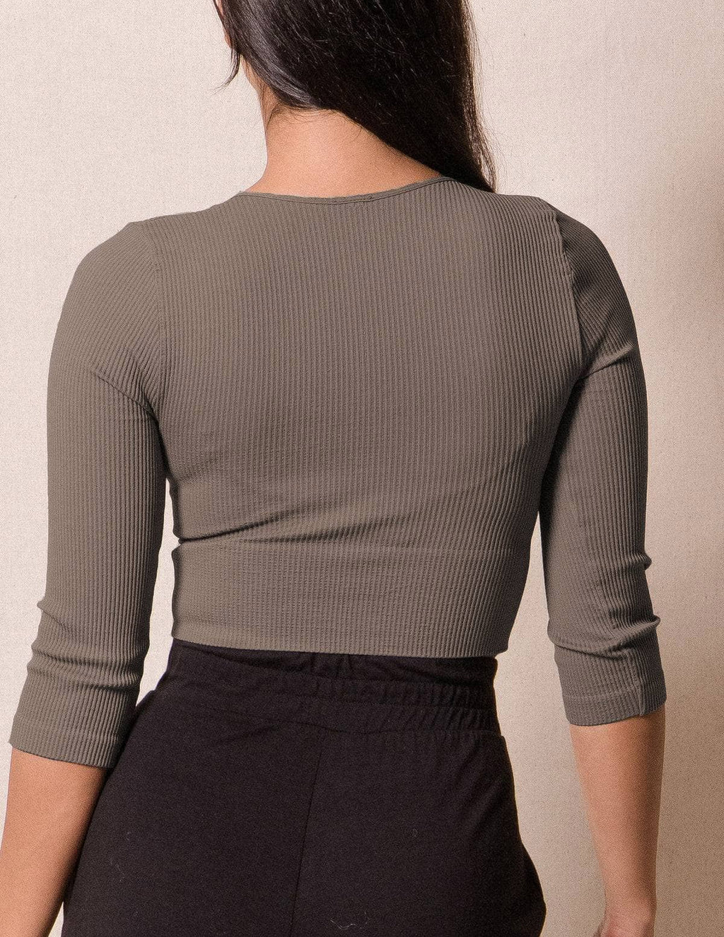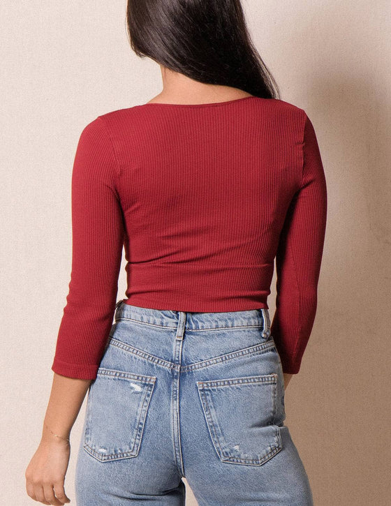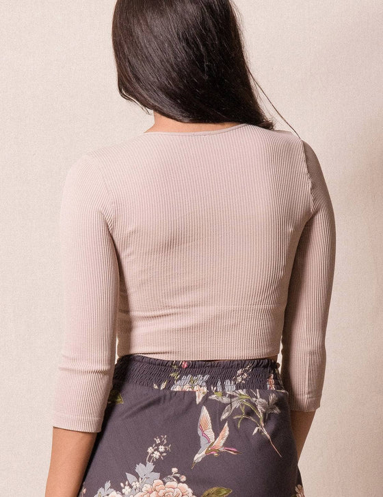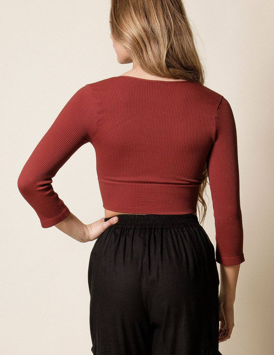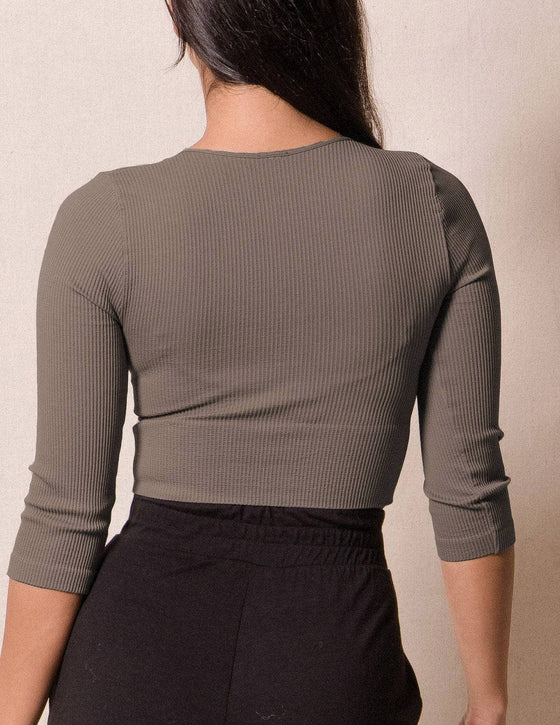 Control Fit Ribbed 3/4 Sleeve Crop Top