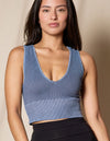 Control Fit Vintage Deep V Crop is a wardrobe essential. This plunging crop joins our signature Control Fit collection featuring a perfect stretch fit with deep v-neck and high back. The Vintage color dye lends it an interesting touch. Meditating or moving - creates the secure feeling we all like.